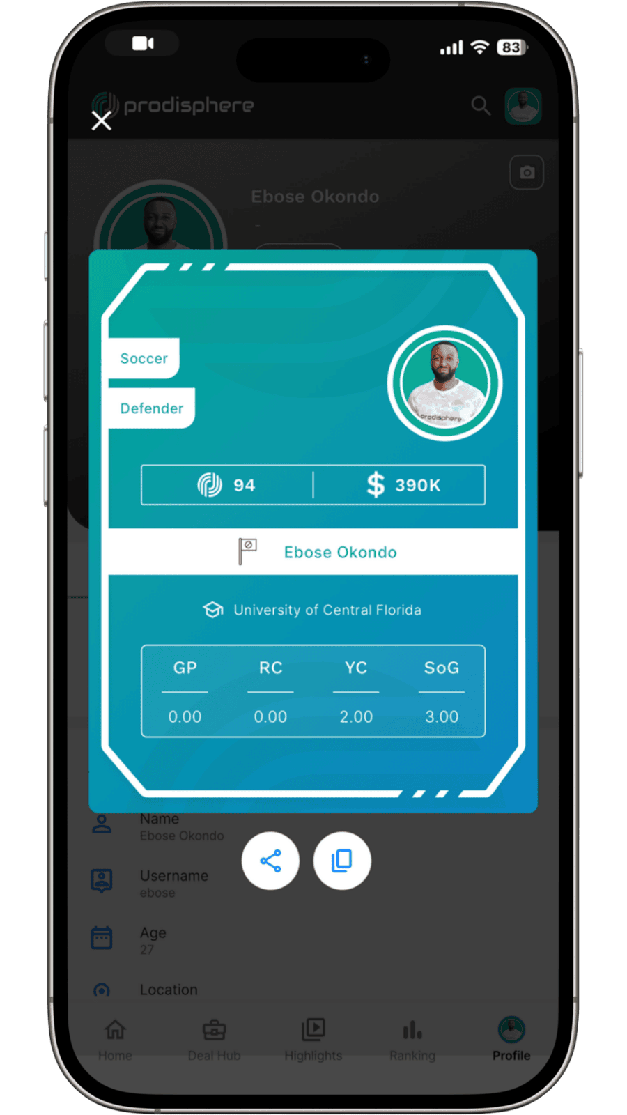 Every player at the Prodisphere Cup receives their own Prodisphere Player Card, a digital profile that highlights: